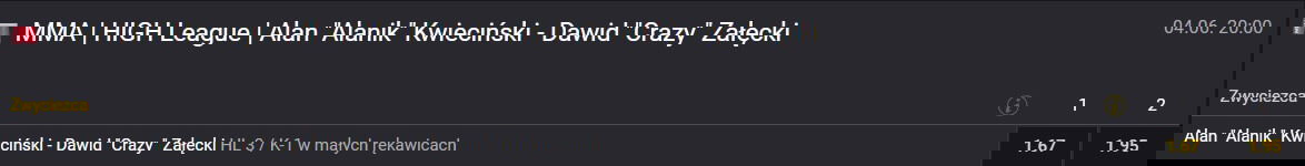 Kurs na wygraną Alana wynosi 1.67, z kolei wygrana Dawida Załęckiego została oszacowana na kurs 1.95.