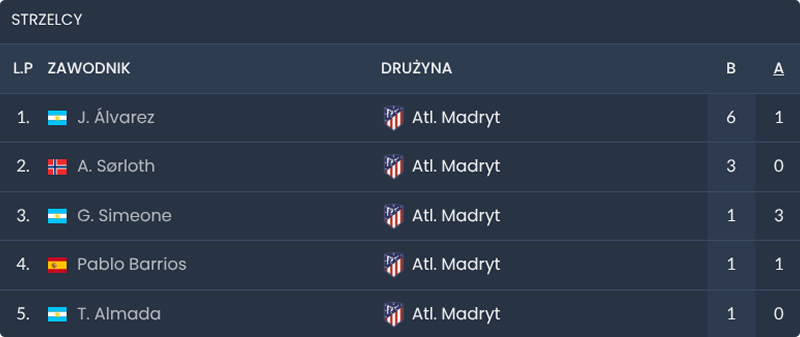 - Atletico Madryt: Oblak - Llorente, Le Normand, Lenglet, Hancko - Simeone, Koke, Barrios, Griezmann - Alvarez, Sorloth