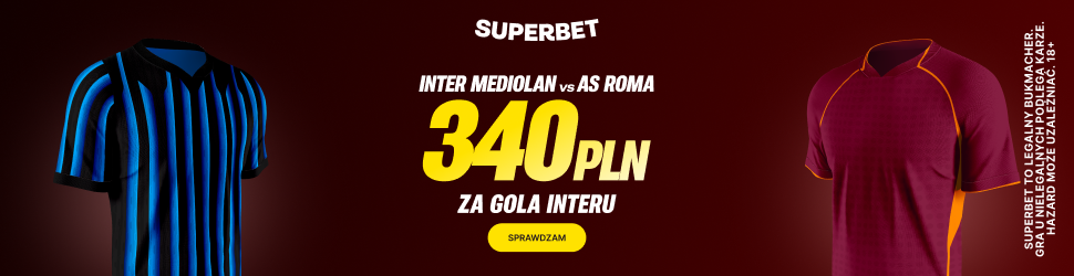 Nerazzurri mają sześć punktów przewagi nad drugim w tabeli Milanem. Warto zwrócić uwagę na to, że Inter nie wygrał żadnego z 3 ostatnich meczów ligowych. Piotr Zieliński i spółka zyskają szansę na poprawę tego stanu rzeczy już w najbliższą niedzielę. Superbet proponuje nam pokaźny bonus 340 PLN za gola Interu z Romą.