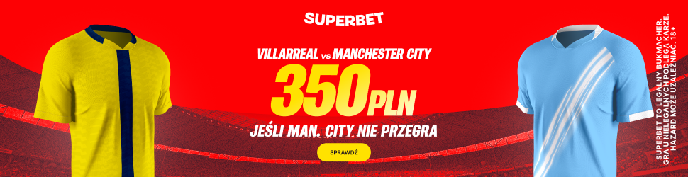 The Citizens w najbliższy wtorek zmierzą się z hiszpańskim Villarreal w ramach Ligi Mistrzów. Faworytem tego starcia są podopieczni Pepa Guardioli. Specjalnie na to spotkanie Superbet przygotował kolejny bonus. W jego ramach zyskujemy szansę na zyskanie aż 350 PLN.