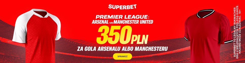 W hicie 23. kolejki Premier League Arsenal zmierzy się z Manchesterem United. Z tej okazji Superbet przygotował dla nowych graczy rejestrujących się z kodem TYPERVIP bonus 350 PLN za wytypowanie drużyny z golem!