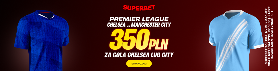 Z okazji meczu Chelsea vs Manchester City w 32. kolejce Premier League bukmacher Superbet przygotował dla nowych graczy bonus 350 PLN za wytypowanie drużyny z golem.