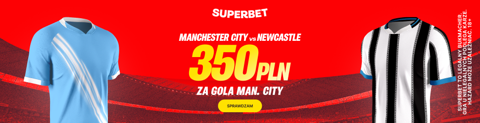 The Citizens są obecnie wiceliderem angielskiej ekstraklasy. Piłkarze Pepa Guardioli w pierwszym starciu półfinałowym pokonali piłkarzy Eddiego Howe’a 2:0 po golach Semenyo i Cherkiego. Superbet proponuje nam bonusowe 350 PLN za gola Man City w meczu z Newcastle.
