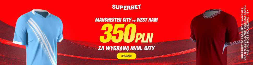 Manchester City jest ostatnio w świetnej formie. Piłkarze Guardioli niedawno pokonali słynny Real Madryt, a w lidze zanotowali cenne zwycięstwo z Crystal Palace. Drużyna z niebieskiej części Manchesteru jest także wiceliderem tabeli ligowej. Superbet oferuje nam bonus o wartości aż 350 PLN za wygraną City z The Hammers.