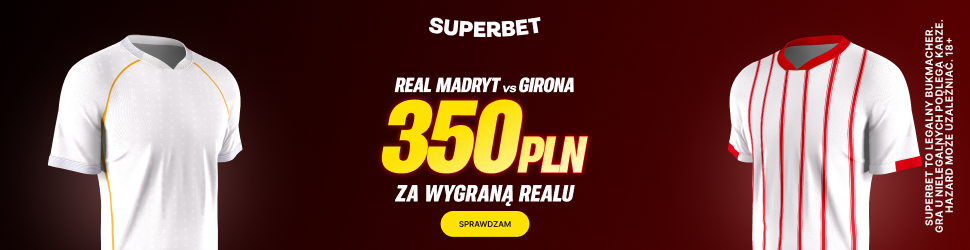 Najbliższy weekend zaczniemy od ciekawego pojedynku w hiszpańskiej ekstraklasie. W piątkowy wieczór Królewscy z Madrytu podejmą Gironę. Z okazji tego meczu Superbet przygotował atrakcyjną promocję dla nowych graczy, w której do zgarnięcia jest aż 350 PLN bonusu.