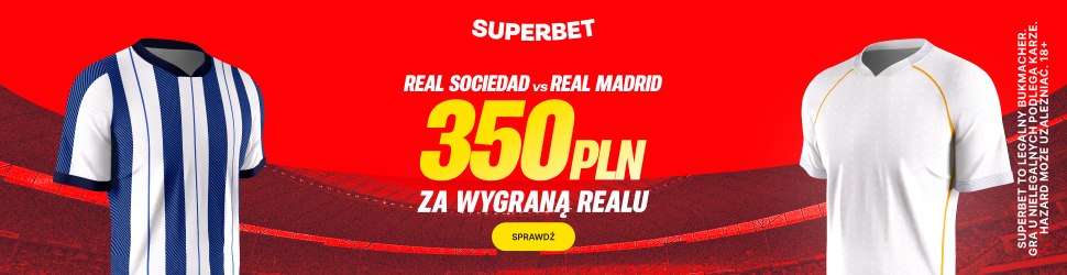 W najbliższy weekend będziemy świadkami wielu ciekawych pojedynków w topowych ligach piłkarskich. W jednym z nich obecny wicelider La Liga, Real Madryt, podejmie Real Sociedad. Z tej okazji Superbet przygotował atrakcyjną promocję tylko dla nowych graczy.