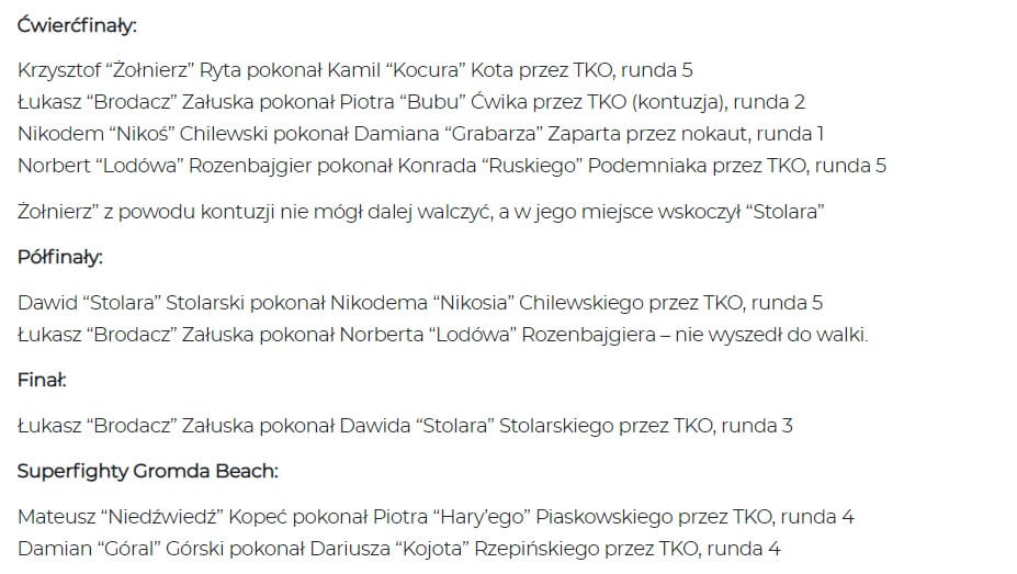 Gromda Beach walki nie są jeszcze ogłoszone - czekamy na losowanie turnieju, do którego dojdzie zapewne tradycyjnie dzień przed galą spod szyldu Gromda.