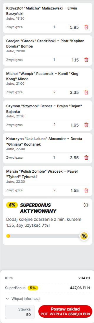 | Bonus na FAME MMA 28 | 3755 PLN |