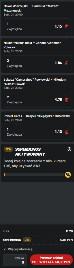 Im bliżej gali, tym Superbet poszerza swoją ofertę o dodatkowe opcje, w tym zakłady specjalne.