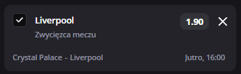 Postaw za dokładnie 1 PLN ze środków własnych kupon SOLO, na którym znajdzie się zakład na wygraną Liverpoolu z Crystal Palace - Kupon za środki bonusowe (alternatywa)
