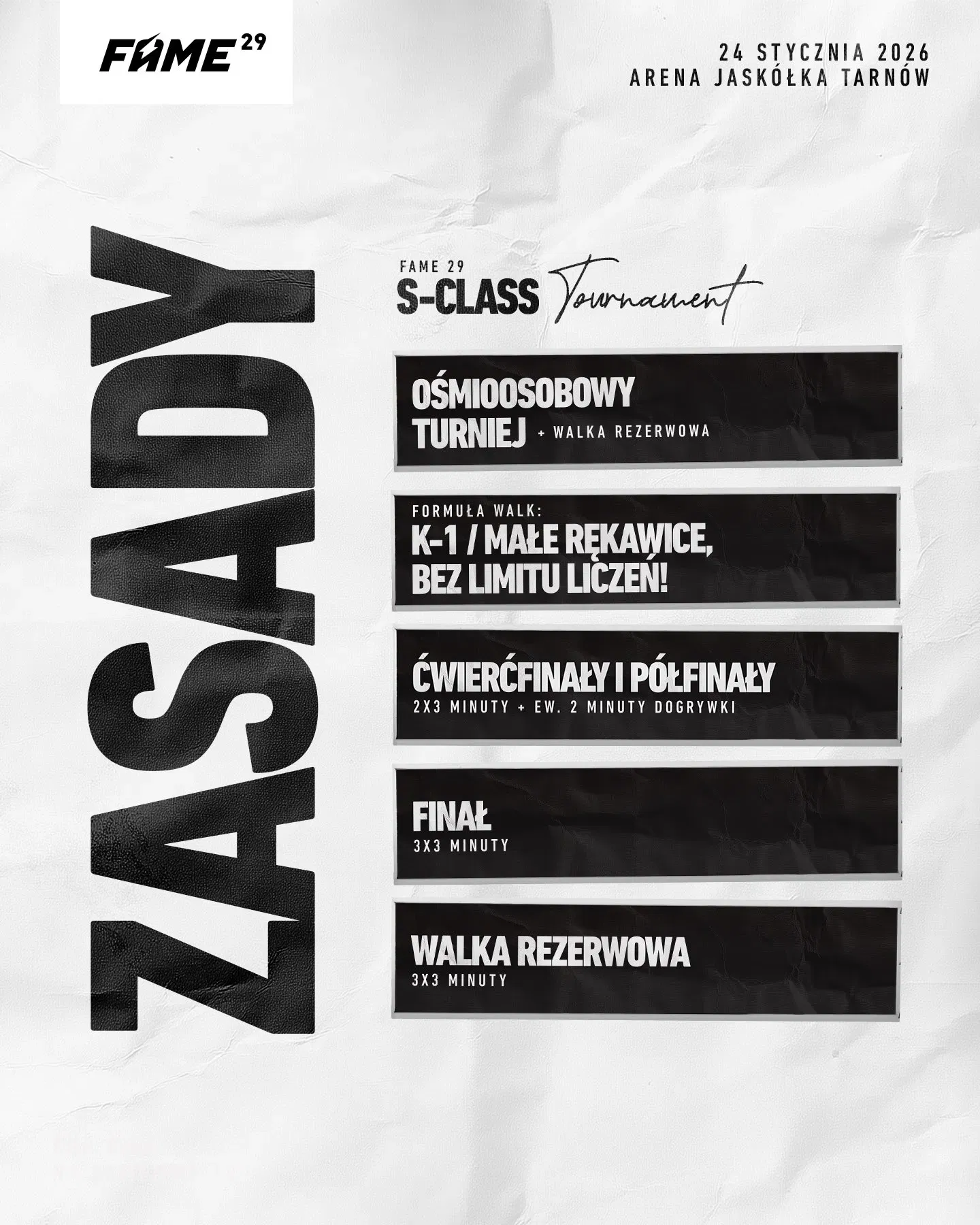 Do turnieju przystąpi ośmiu zawodników, lecz w rezerwie czekać będzie starcie Kamila Mindy z duetem Koziołek & Sequento. Formuła w każdym pojedynku to K-1 w małych rękawicach i co istotne bez limitu liczeń.