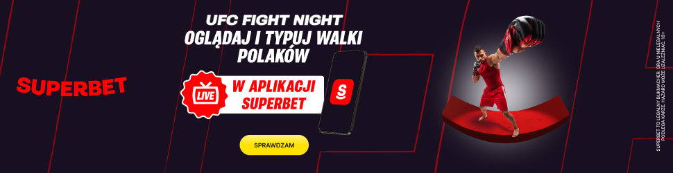 Szykujesz się na walki trzech naszych rodaków podczas UFC Fight Night 266? Oglądaj na żywo za darmo walkę Klaudii Syguły z Priscilą Cachoeirą, Jakuba Wikłacza z Muinem Gafurovem i Michała Oleksiejczuka z Marciem-Adnre Barriaultem. Darmowa transmisja z całej gali dostępna jest u bukmachera Superbet - wystarczy, że masz zarejestrowane i w pełni zweryfikowane konto!